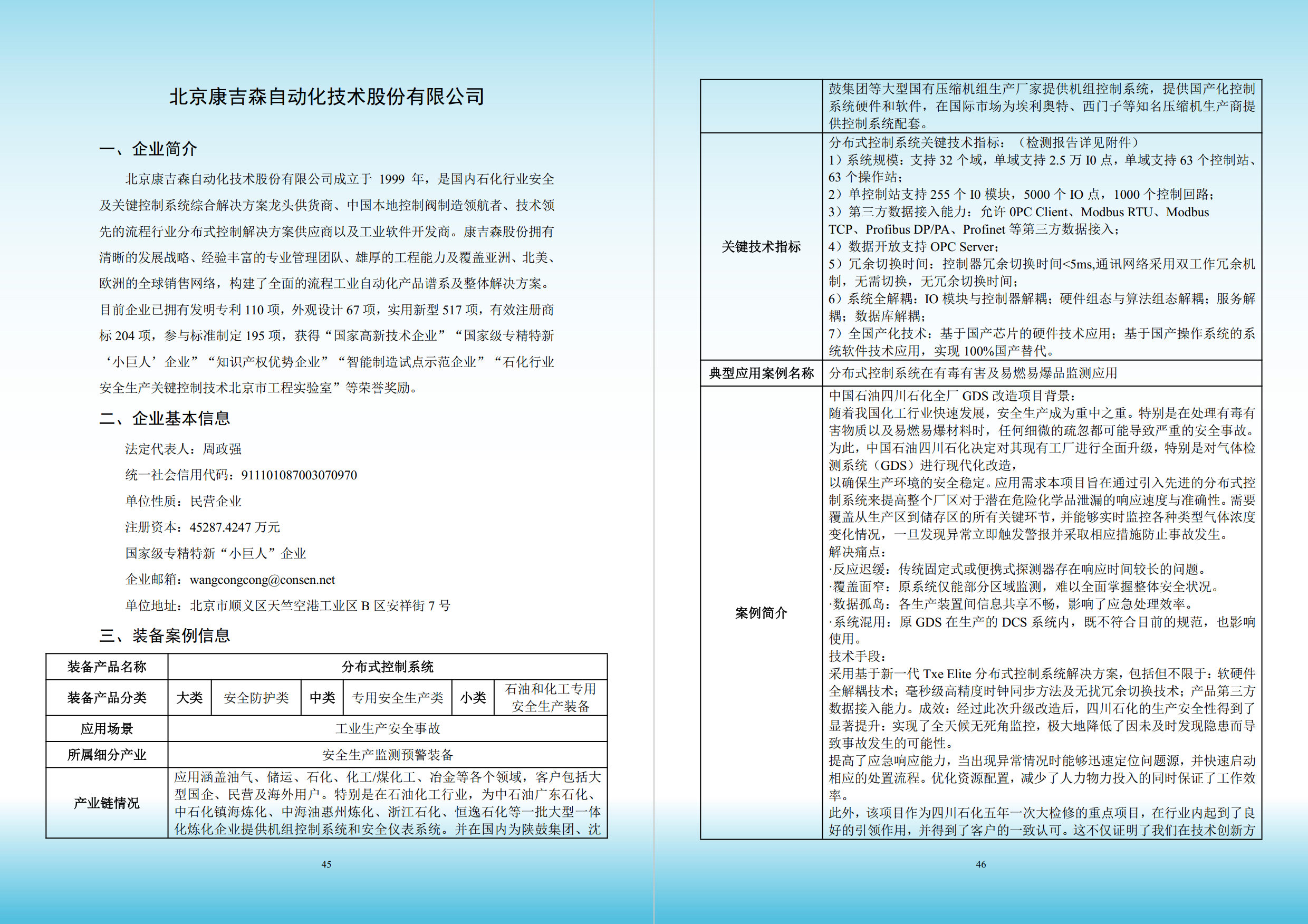 2025年6月,北京康吉森自動化技術(shù)股份有限公司(以下簡稱“康吉森股份”)自主研發(fā)的分布式控制系統(tǒng)憑借在石化安全生產(chǎn)領(lǐng)域的創(chuàng)新技術(shù)與成熟應(yīng)用,成功入選北京市經(jīng)濟(jì)和信息化局(以下簡稱“北京市經(jīng)信局”)發(fā)布的《北京市先進(jìn)安全應(yīng)急裝備推廣目錄(2025版)》(以下簡稱《目錄》)。該裝備被列為“安全防護(hù)類-石油和化工專用安全生產(chǎn)”領(lǐng)域的標(biāo)桿產(chǎn)品,彰顯了企業(yè)在工業(yè)安全控制領(lǐng)域的領(lǐng)先地位。