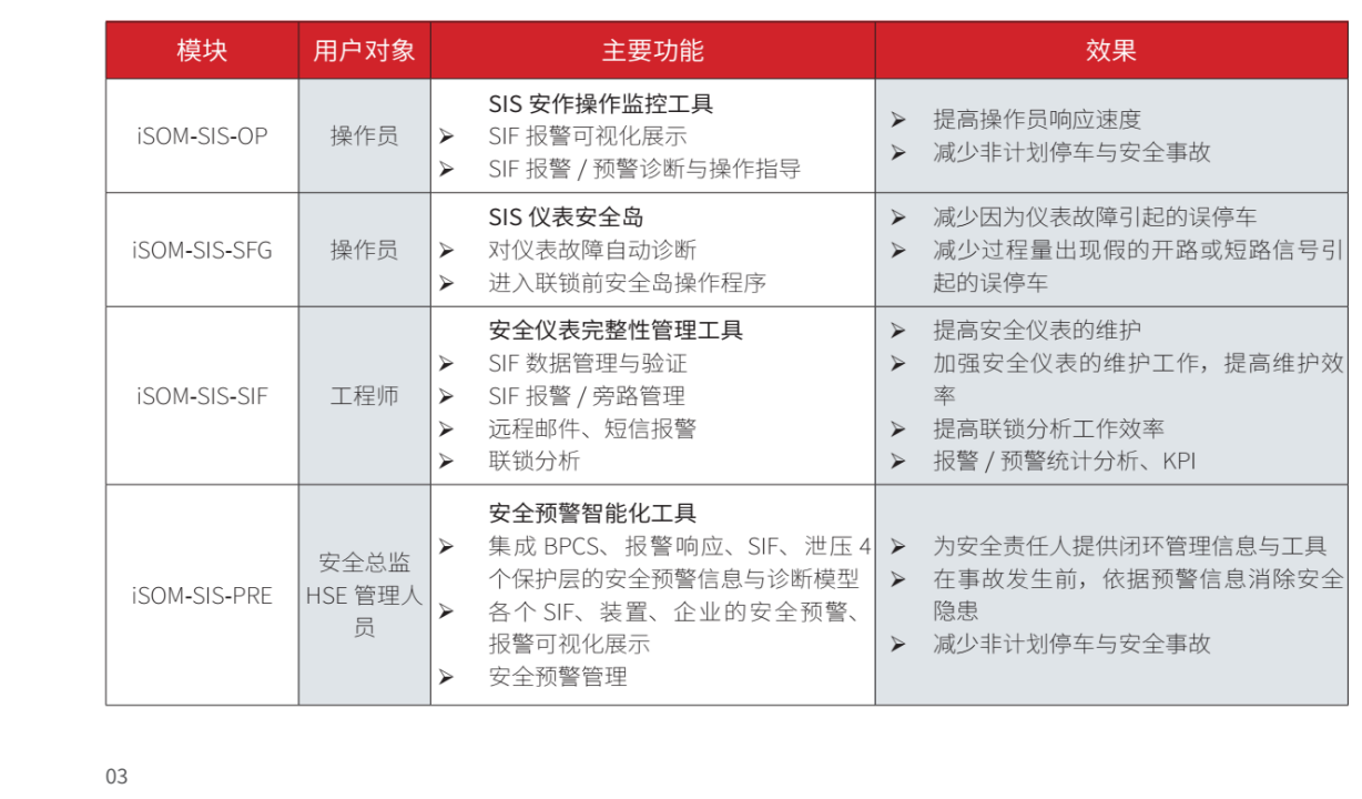 iSOM-SIS 系統(tǒng)可以更好地為安全儀表系統(tǒng)提供在線監(jiān)控、SIS 功能完整性管理、預(yù)警及異常情況下的操作指導(dǎo)。